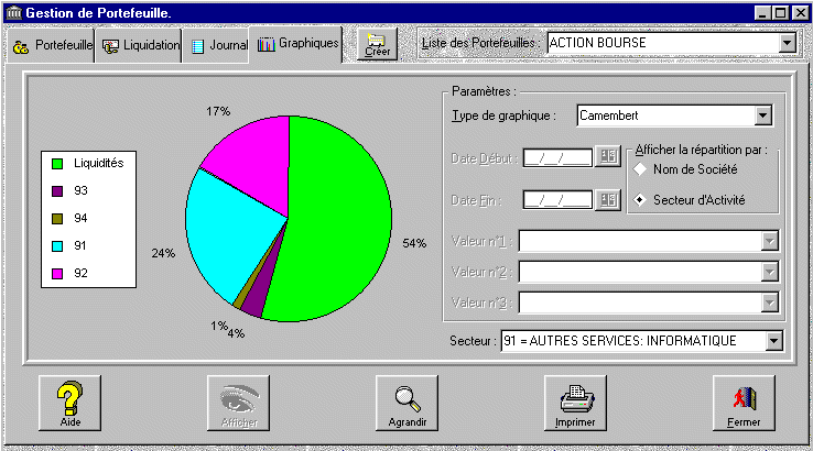 votre portefeuille sous forme graphique. Vous avez le choix entre une visualisation par valeur ou par type